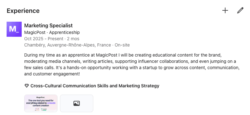 Adding your new position to your LinkedIn experience section.